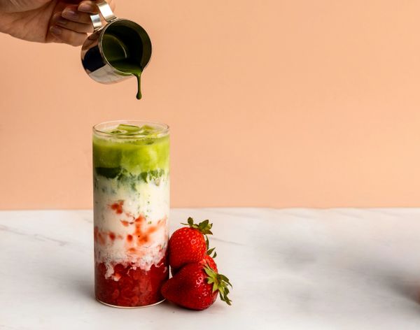 hot/ice, made w/ premium matcha powder