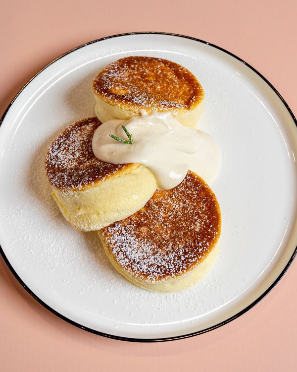(3) soufflé pancakes, salted mascarpone cheese whipped cream, icing sugar
